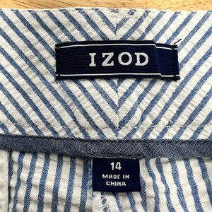 Izod Womens Striped Shorts Seersucker Blue/White Size 14 Pockets