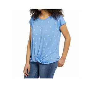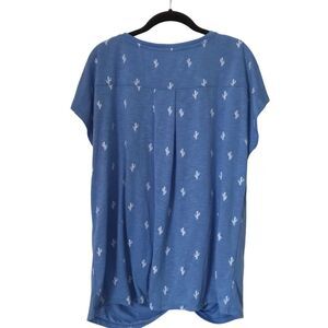 Izod Womens Top XXL Blue Cactus Printed Tee T-Shirt Cap Sleeve Twist Hem Tunic