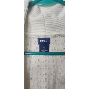Izod Womens White Swiss Dot Eyelet Cardigan Sweater, Small