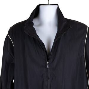 Izod XFG Mens Black Performance 1/2 Zip Jacket XXL. Izod Extreme Function Golf performance pullover jacket with half zip front. Shell is soft, brushed material. Stand-up collar. Front pockets with hook & loop closures. Wind and water resistant, mesh lining for ventilation. Soft elastic cuffs and rear waistband. Good used condition, no rips tears or stains. Embroidered Logo on Sleeve.