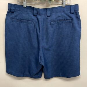 Izod XFG Performance Golf Shorts Flat Front Navy in size 38. Excellent like new condition. Lightweight polyester, zipper and button front closure, belt loops, two front mesh lined pockets, two back Velcro closure pockets, navy blue with subtle plaid. Please see photos for approximate measurements and details. Item may show difference in color based upon photography and perception. Photos are part of the description, as everyone’s level of condition may vary. From smoke free and pet free home. All packages are shipped the same or next business day.