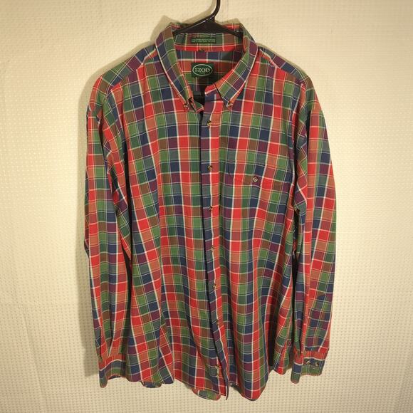 Izod XL Plaid Button Down Shirt Men’s Long Sleeve Red Green Blue Cotton VTG