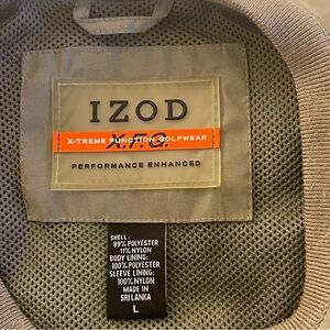 Izod X-Treme Function Golfwear Golf Pullover Windbreaker. Taupe / gray pullover wind shirt with two secure zippered hand pockets. Ribbing at V neck, cuffs and waistband. Approximate measurements laying flat: the chest is 26 1/2” and the length is 28”. Great condition. Size L