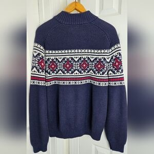 Izod sweaters are always in style and never disappoint. This thick fisherman style peacoat blue sweater will keep you warm on those cold chilly days.
