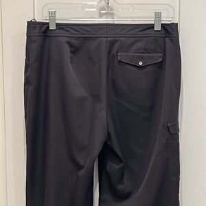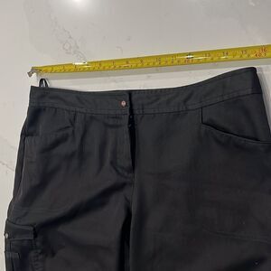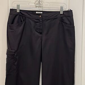 Izod black golf pants, Size 8. Pants feature front zipper with one button and one snap closure, 2 Front pockets, 1 mid thigh pocket and 1 snap close back pocket. Pants are in EUC with no rips, tears, stains or holes. Smoke and pet free home (1313*)