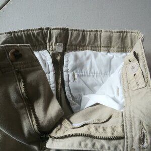 Izod khaki school approved pants, adjustable waist, zipper and button closure, stretch, slim fit