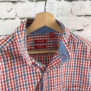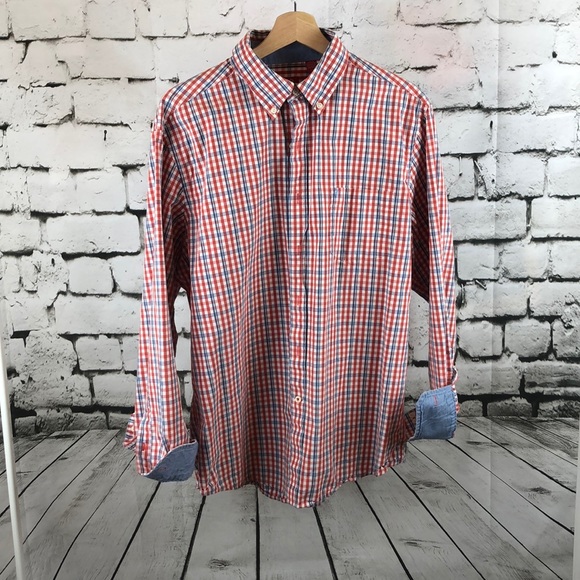 NWOT so perfect for the Fourth of July or anything! Slim fit design. Awesome chambray detail at cuff and neck.