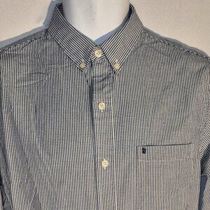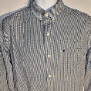 Izod dress shirt, blue-white-black micro stripes, front pocket in size Medium
