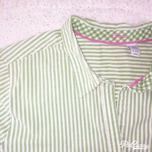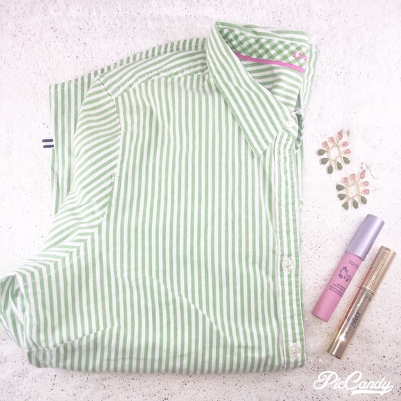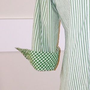 A twist on the traditional button down with apple green stripes and gingham out turned cuffs π Fitted and with stretch π Small stitch missing on cuff button hole shown π 97% cotton 3% spandex π Excellent preloved condition π Smoke free home and fast shipper π Please use offer button or request a bundle π
