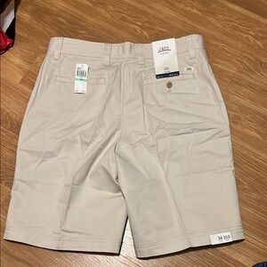 These Izod khaki flat front shorts are crafted for a timeless look, ideal for casual outings. The lightweight material ensures comfort, while the straight-leg cut offers a relaxed fit. Perfect for warm weather, these shorts blend style and ease effortlessly.
