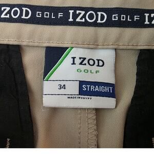 Izod light khaki tan flat front golf athletic shorts - 34