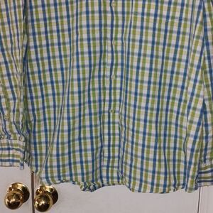 Izod lime green blue whote checkered button down shirt