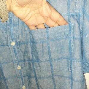 Izod shirt mens m blue linen cotton blend window pane casual quiet luxury top this shirt is in great condition. nice summer look