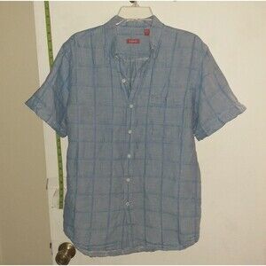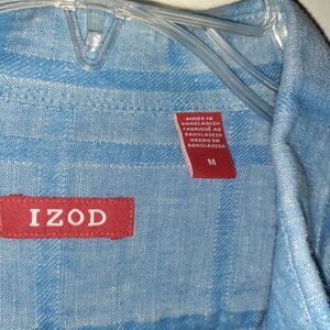 Izod linen cotton shirt mens m blue blend window pane casual quiet luxury top