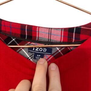 This is a stylish and comfortable Izod long-sleeve sweatshirt. It features a unique tie-front design and a two-layer construction for added warmth. Perfect for layering or wearing on its own. The size is small, offering a flattering fit.