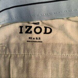 Durable and stylish Izod men's size 42" blue flat front shorts. Ideal for casual occasions, these shorts are 9.5" in length, providing a comfortable and relaxed fit.