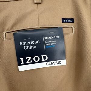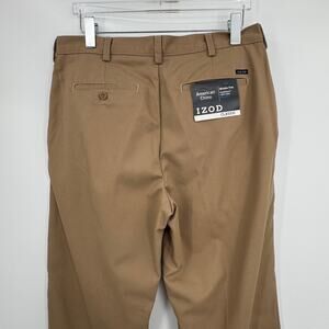 Izod pants men's 36x32 classic American chino flat front khaki wrinkle free NEW