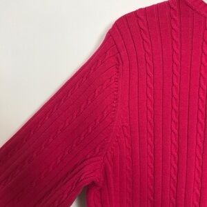 Izod 100% cotton cable knit sweater in bright pink. Izod monogram on the left front. Size 1X. Lovely casual sweater to pair with jeans or a skirt with boots. Excellent pre-owned condition.