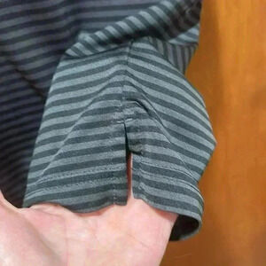 Black and gray. Preowned. Short sleeve no pocket. Square split bottom. Approximately 25” pit to pit and 30 1/2” long