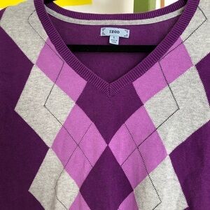 Izod purple cotton v-neck argyle sweater. Size L. Purple, lavender and grey.
