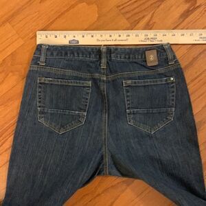 Ayjan denim jeans size 10 R. Classic fit boot cut 99% cotton and one percent spandex. Very little distress on these jeans. Smoke free and pet free home and excellent condition