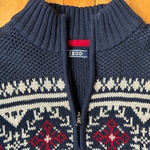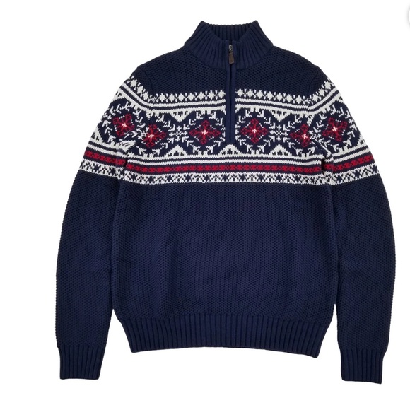 Izod sweater pullover 1/4 zip Fairisle holiday blue red cotton blend size med