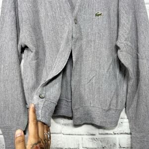 Izod x Lacoste Vintage classic preppy Grey Cardigan Sweater Mens size Medium