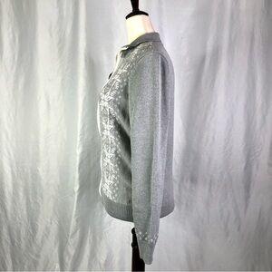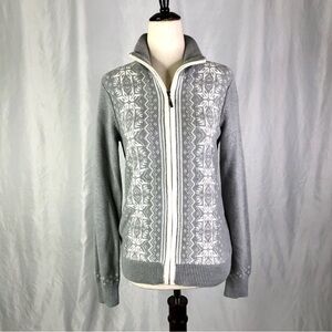 Izod zip front cardigan sweater snowflake fair isle grey white S