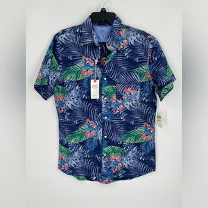 Izod Casual Blue Green Button Down Short Sleeve Shirt Relaxed Classic Dockside M