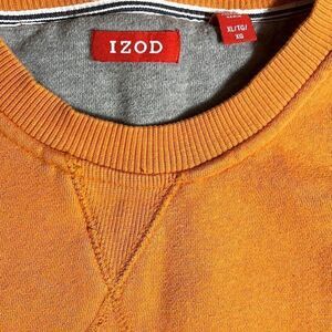 Izod Men's Pullon Sweater Long Sleeve Ribbed Hem Crewneck Cotton Orange Size XL