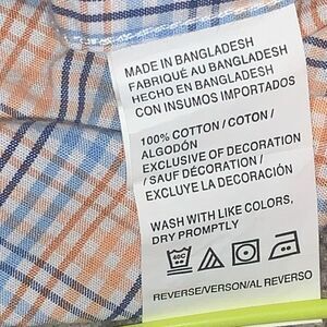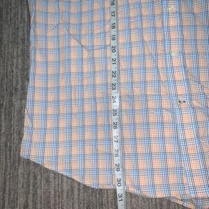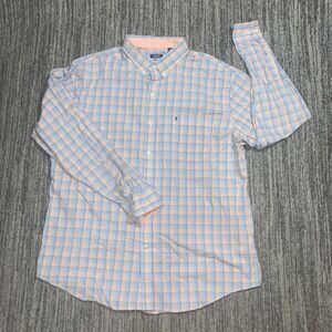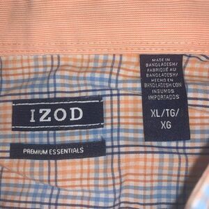 Izod Mens Size XL Button Front Shirt Orange Blue Plaid Long Sleeve 100% Cotton