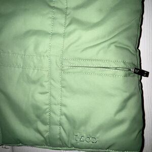 This Izod women's vest in size XS is a versatile addition to your wardrobe. Made of polyester outer shell material and lined with polyester, it features a full zip closure, sleeveless design, and mid-length jacket coat. The green color adds a pop of color to any outfit, while the stand-up collar and logo accents provide a touch of style.