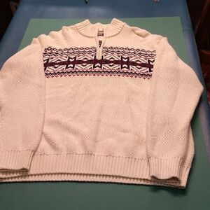 Izod White and Red Snowflake 3/4 Zip Up Cotton Blend Sweater