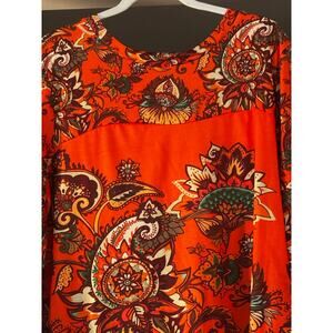 Izuria Bright Tunic Top Orange Paisley Floral Light Knit XL Boho Eye-catching