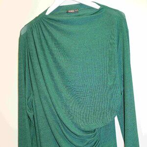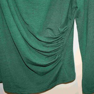 Very flattering green long-sleeved sweater with ruching at the shoulder and at the waist. Only worn twice. Size 2X. Pet-free, smoke-free home.