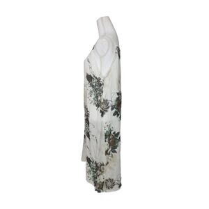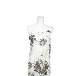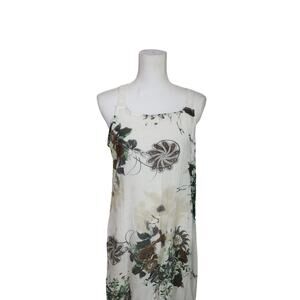 Izuria Linen Midi Dress Floral size XL White Green Tan Midi Lined Sleeveless
