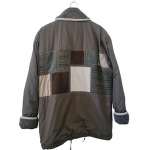 Izzi Genuine Rugged Patchwork Vintage 80's Retro Winter Puff Fleece Accent Corduroy Coat Jacket.