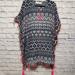 Izzy & Liv Navy & Pink Swim Cover Up One Size cotton Vacay/Cruise/Pool