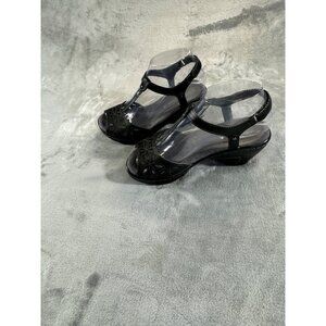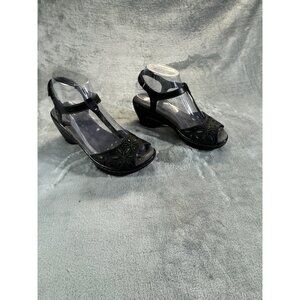 J 41 Adventure On Sandals Womens 6M Cassia T-Strap black Faux Leather heel Wedge
