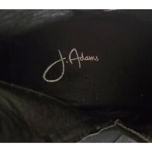 The boots are from the brand Adams and are a size 10. They have a small scuff on the toe, but this does not affect their overall look and functionality. The ankle boot style is perfect for pairing with jeans or dresses, making them versatile for any occasion. Get ready to step out in style with these J. Adams Tess Women's Black Ankle Boots.