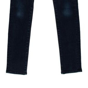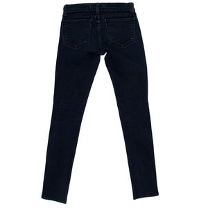 Description: Medium wash blue J Brand skinny jeans with five pockets, tonal stitching throughout and concealed zip closure at front.