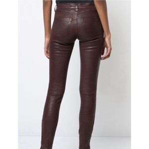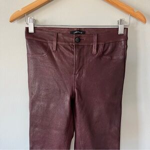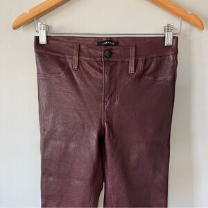 J BRAND Burgundy Stretch Lamb Leather Skinny Ankle Zip Pants Size 26