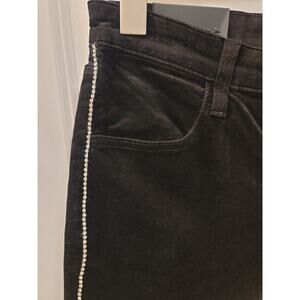 Silver rhinestones adorn the sides of these black velvet pants. 5 pocket style with zip and button fly closure.
