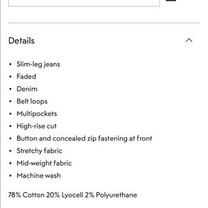 Size 30. Excellent condition. Washed, steamed & ready to wear! See photo of fabric label for content. Feels soft. Darker circular area on back - see last photo. Overall light fading as designed. Slim straight fit thru the leg. Approximate measurements (taken when laying flat- cannot guarantee fit):