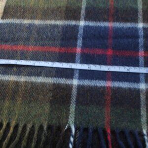 Neck Scarf made in England By Appointment to HRH the Duke of Edinburg which makes this vintage. 100% Wool made by J. Barbour and Sons in the UK. Navy, Olive green, red, beige plaid. Don't know the name of the plaid. Sure there is one. Double the length measurement . . . I had it folded over for the pictures. Pretty. Woven, not knit. Warm. Cozy.