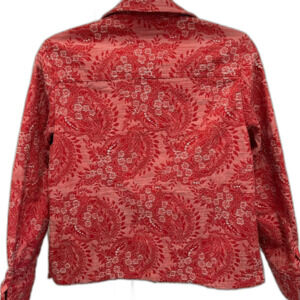This J Bee jacket is perfect for any woman who loves a touch of floral print in her wardrobe. The red and white color combination makes it a great choice for any occasion. The jacket is made from high-quality cotton/poly blend and would be perfect dressed up for the office or dressed down for the weekend.