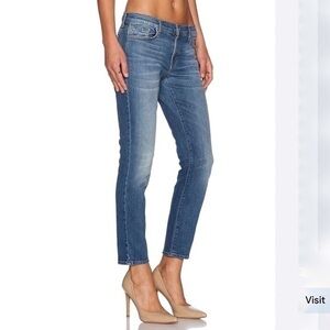 Slouchy, cropped J Brand boyfriend jeans with whiskering and fading throughout.