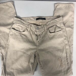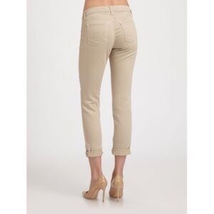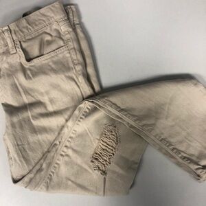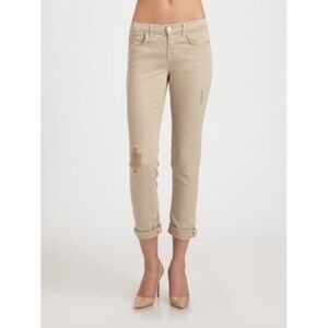Play with proportions in these deconstructed khaki boyfriend jeans an alarmingly soft finish.