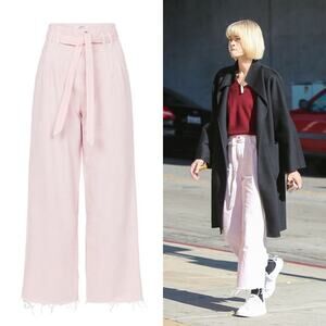 J Brand High Rise Tie Waist Belted Denim Jeans in Faded Pandora (Light Pink)