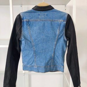 J Brand Bowie Denim Jacket Two-tone Coated Leather Effect: Model Off Duty Vibes